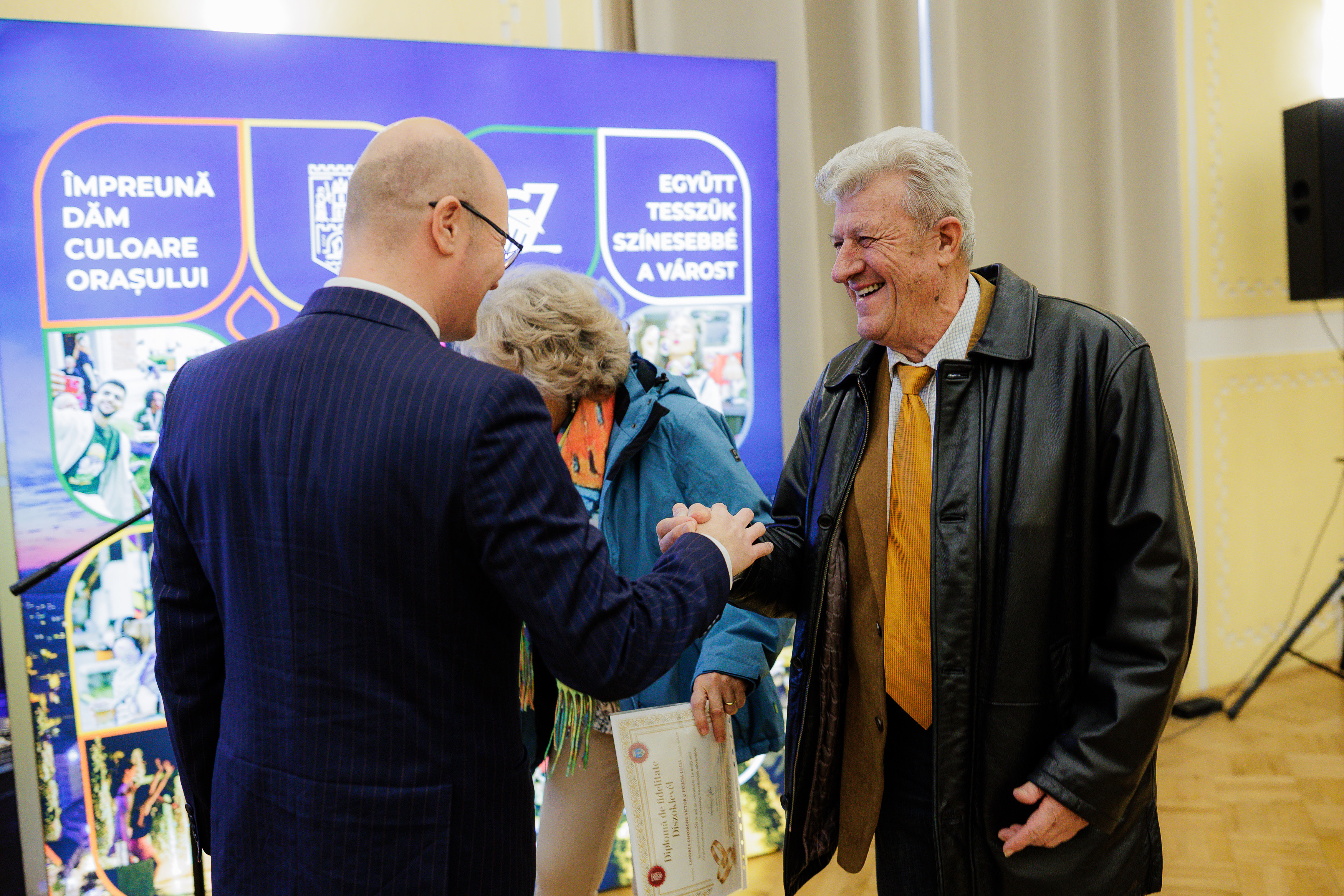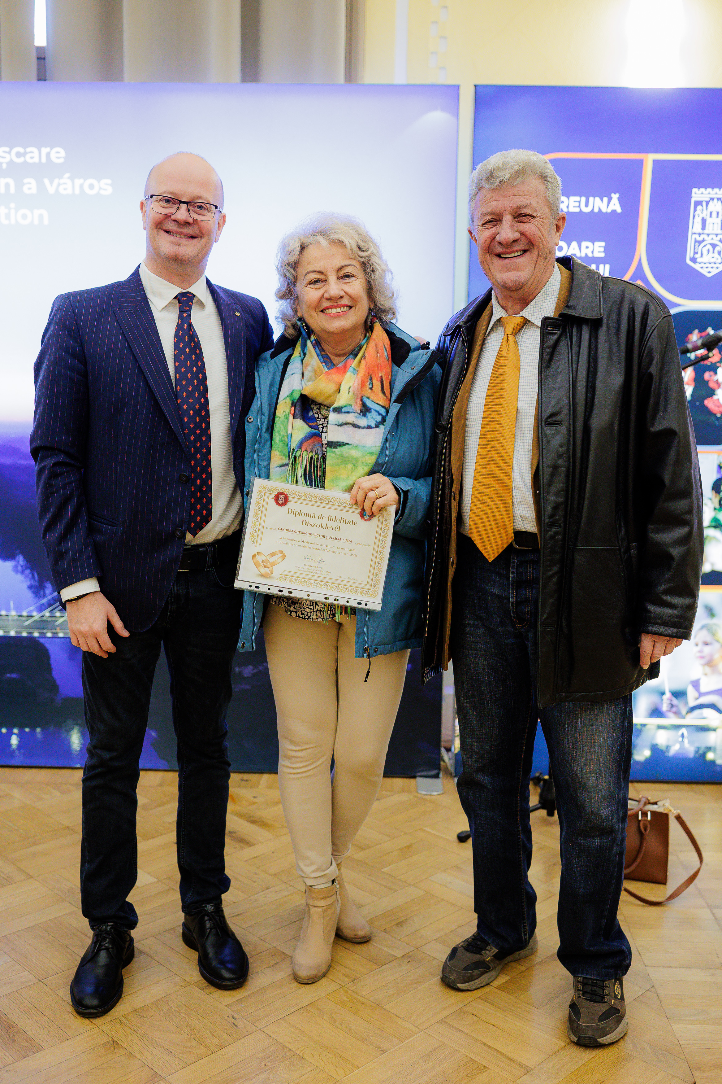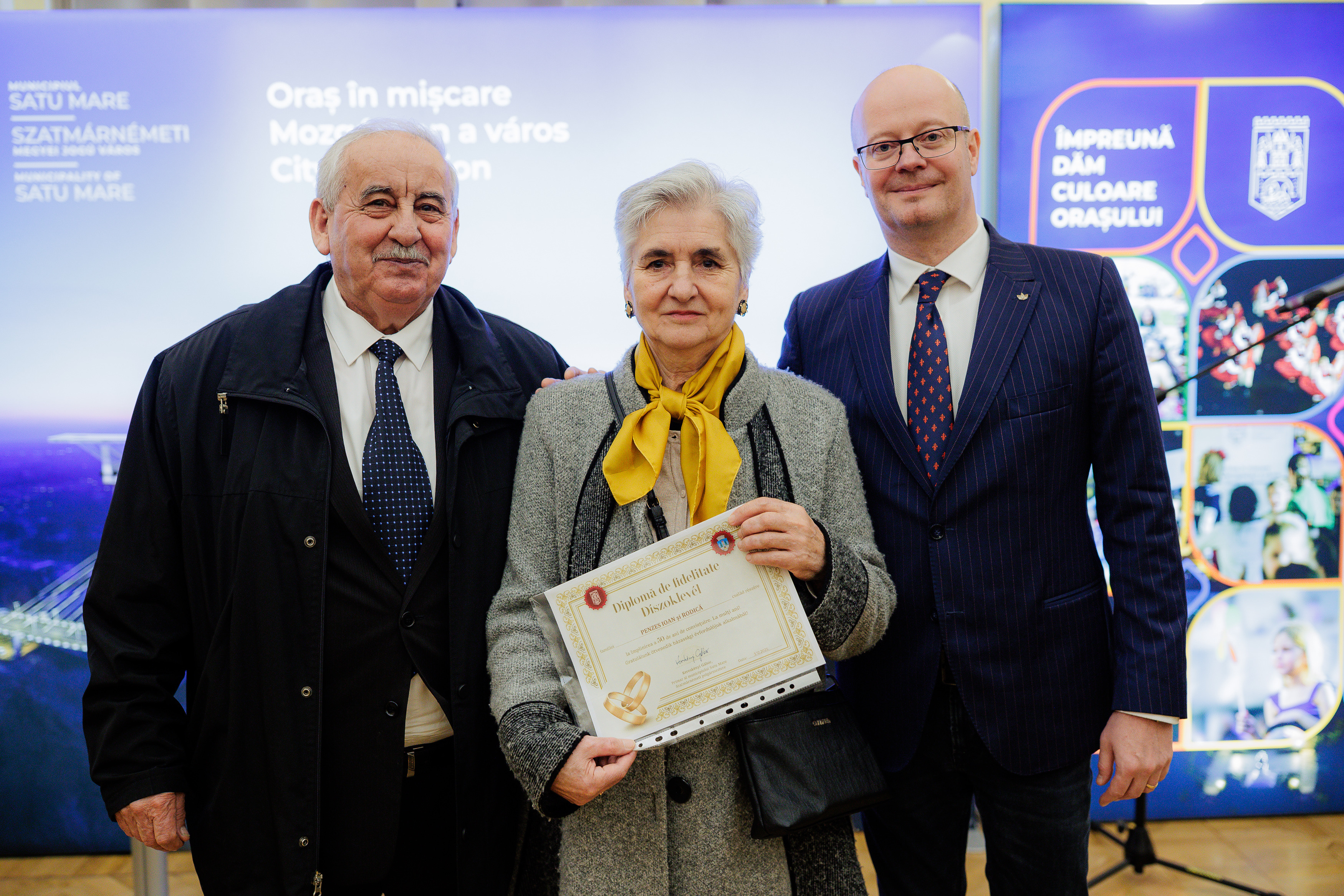În cadru festiv, conducerea Primăriei Municipiului Satu Mare a oferit diplome aniversare și un premiu de 1000 de lei celor 114 cupluri care au aniversat 70, 60, respectiv 50 de ani de căsnicie.