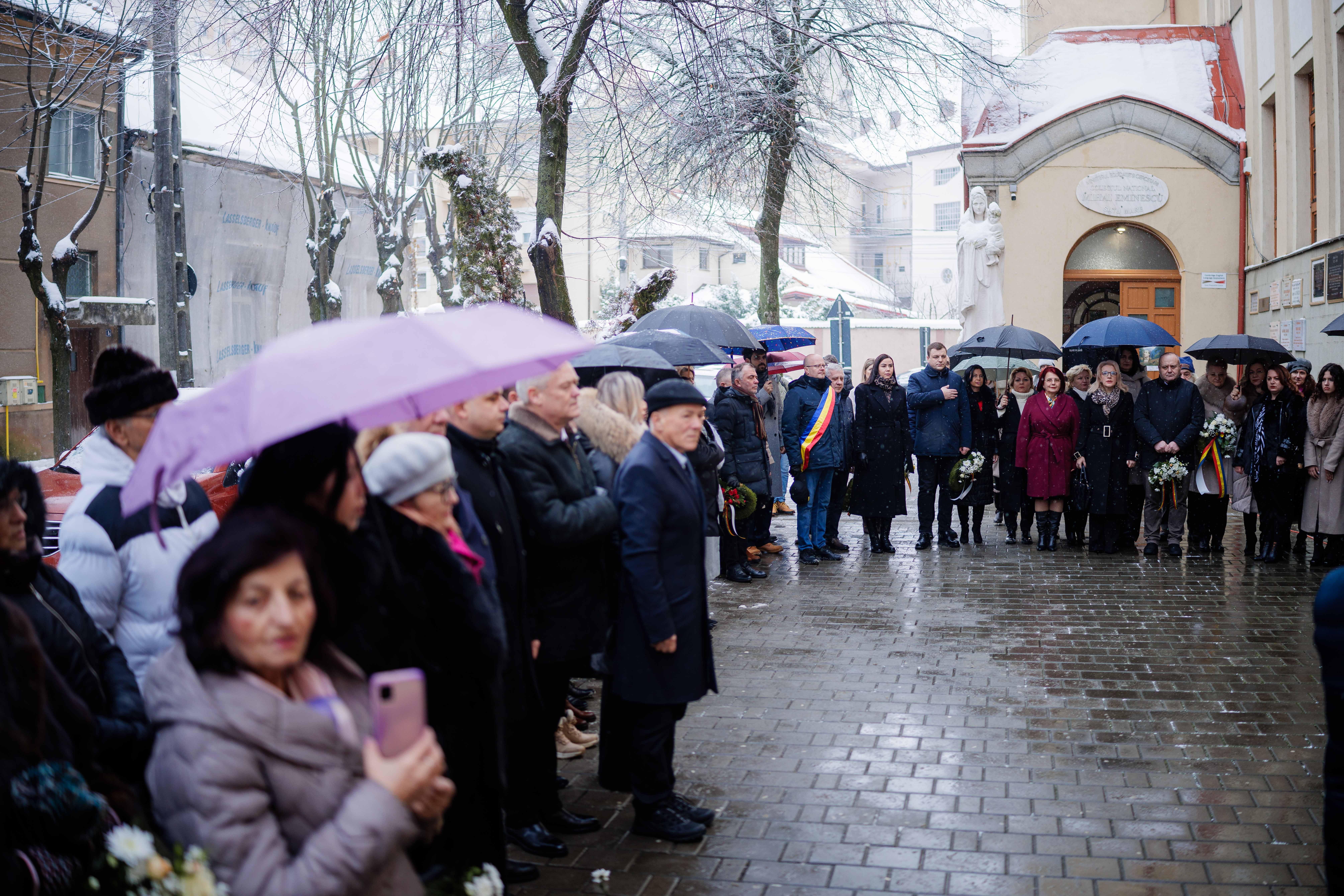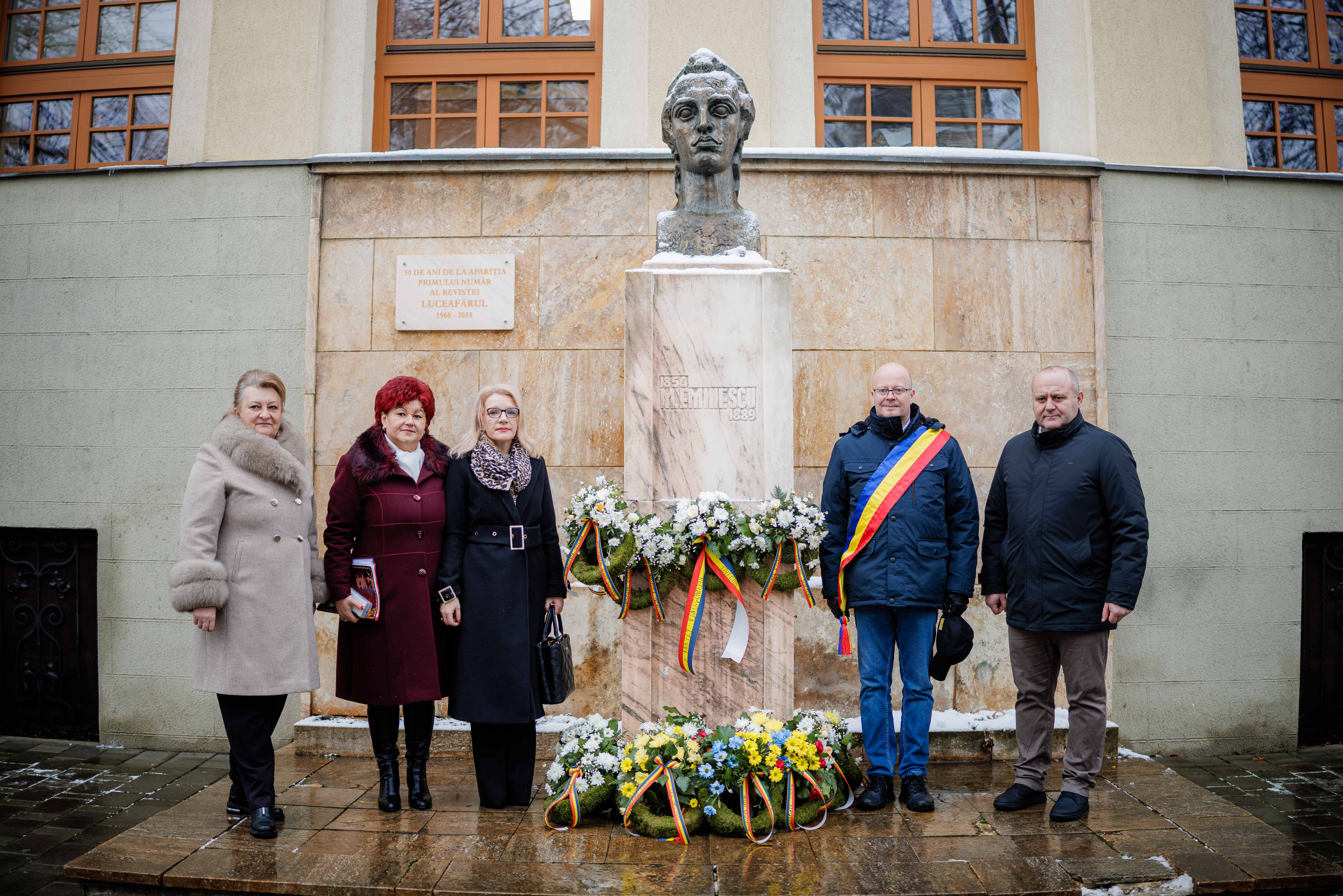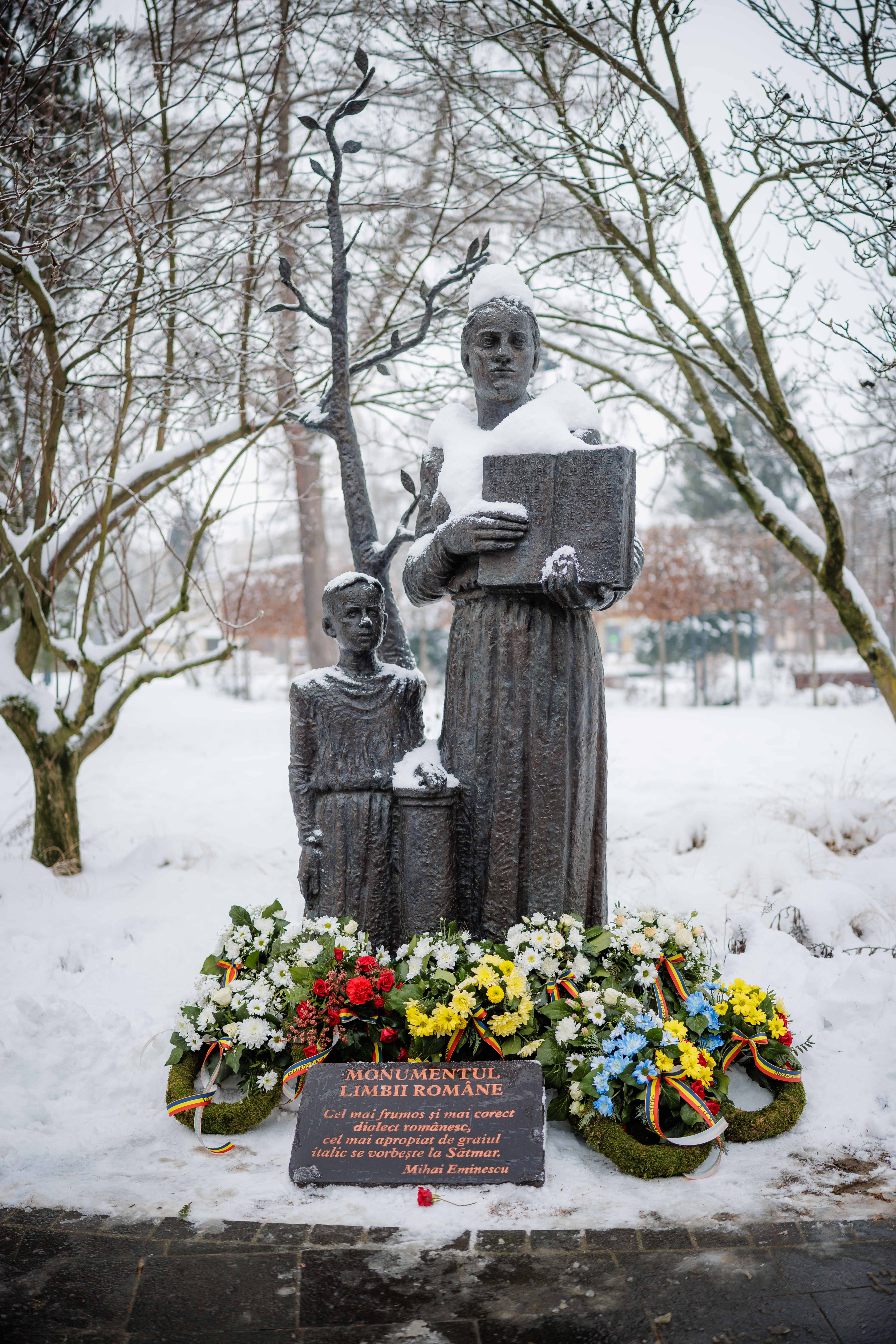 Astăzi, conducerea Primăriei Municipiului Satu Mare a participat la manifestările dedicate împlinirii a 176 de ani de la nașterea poetului național Mihai Eminescu, depunând jerbe la bustul Luceafărului poeziei românești din fața Colegiului Național ,,Mihai Eminescu’’ și la Monumentul Limbii Române.