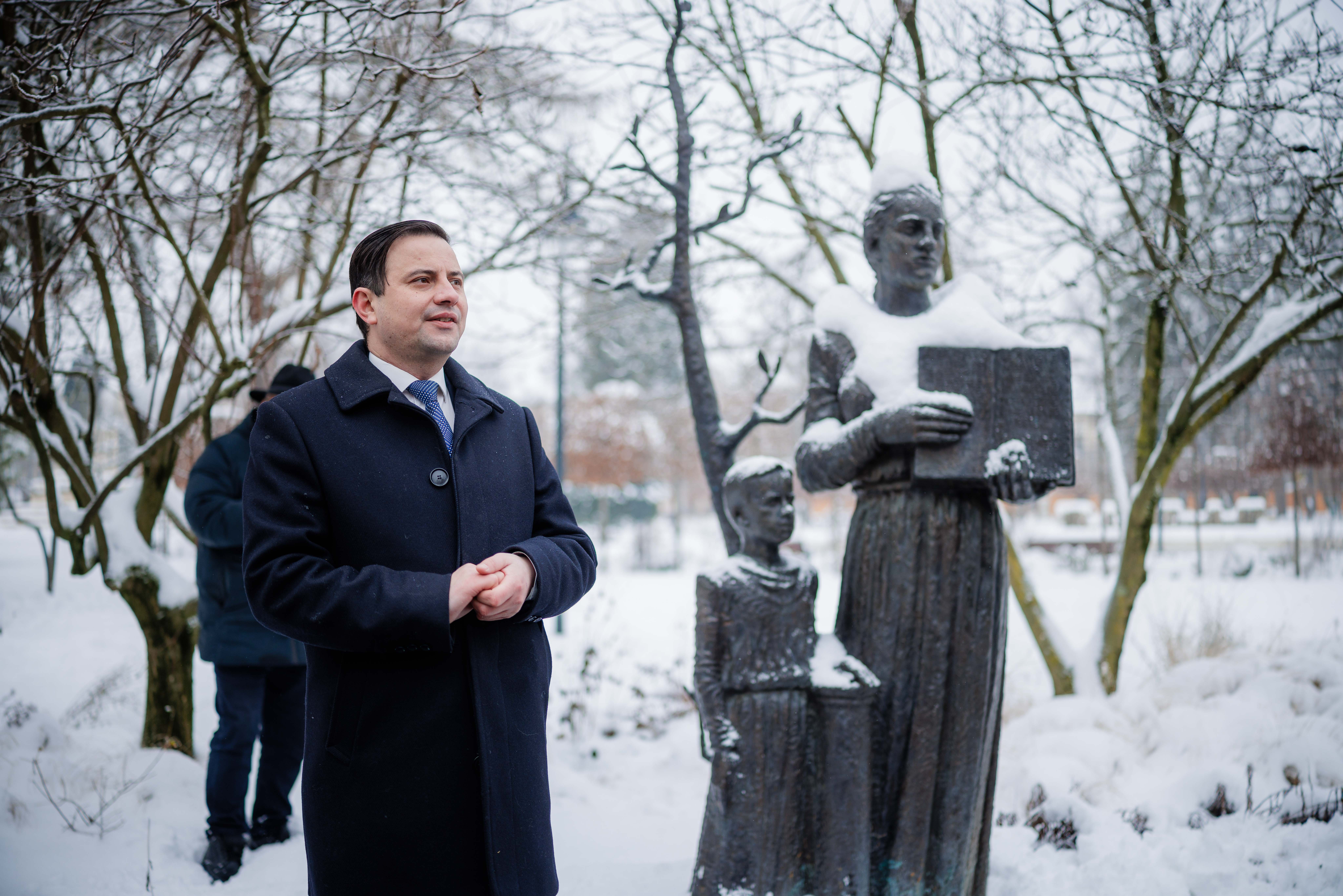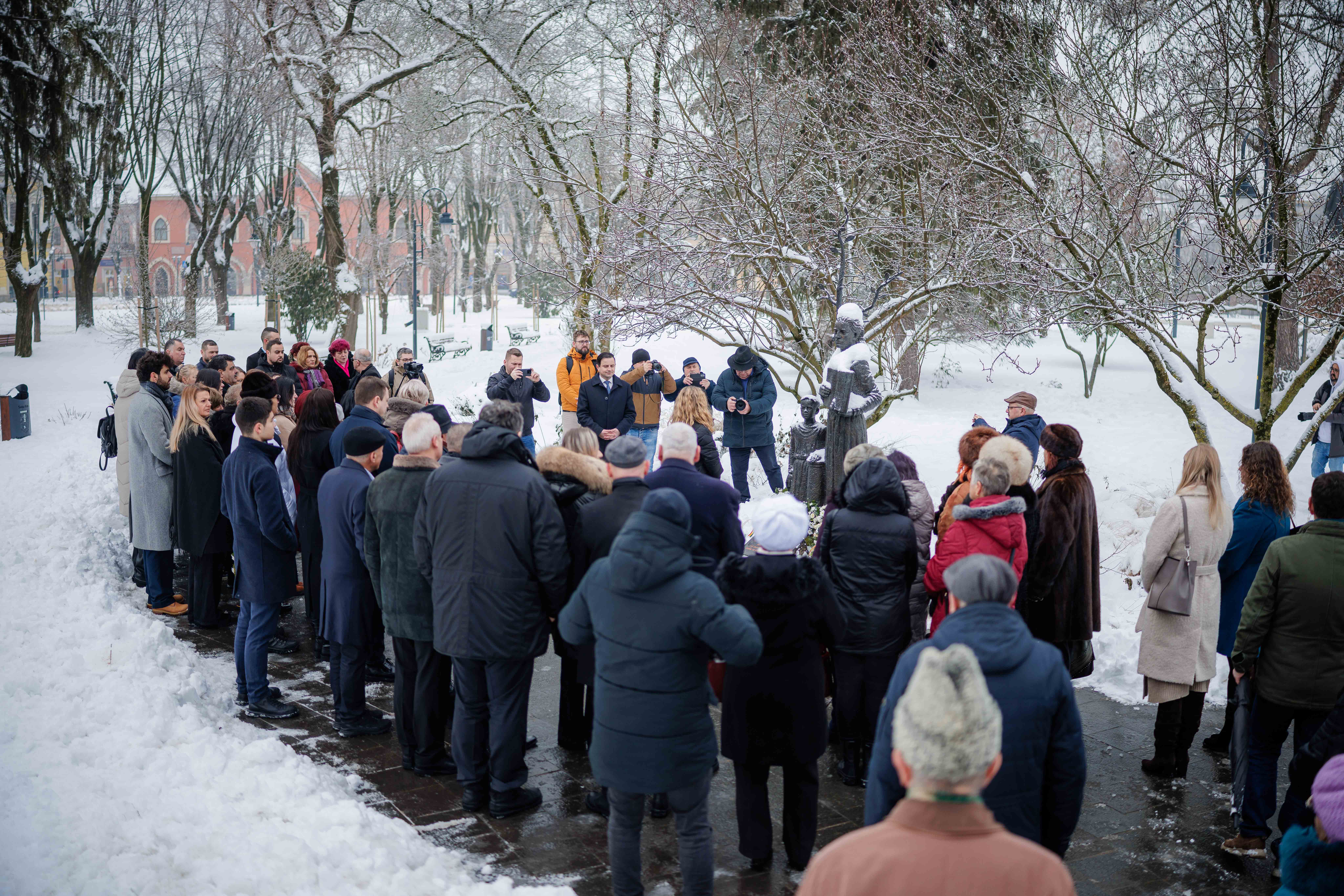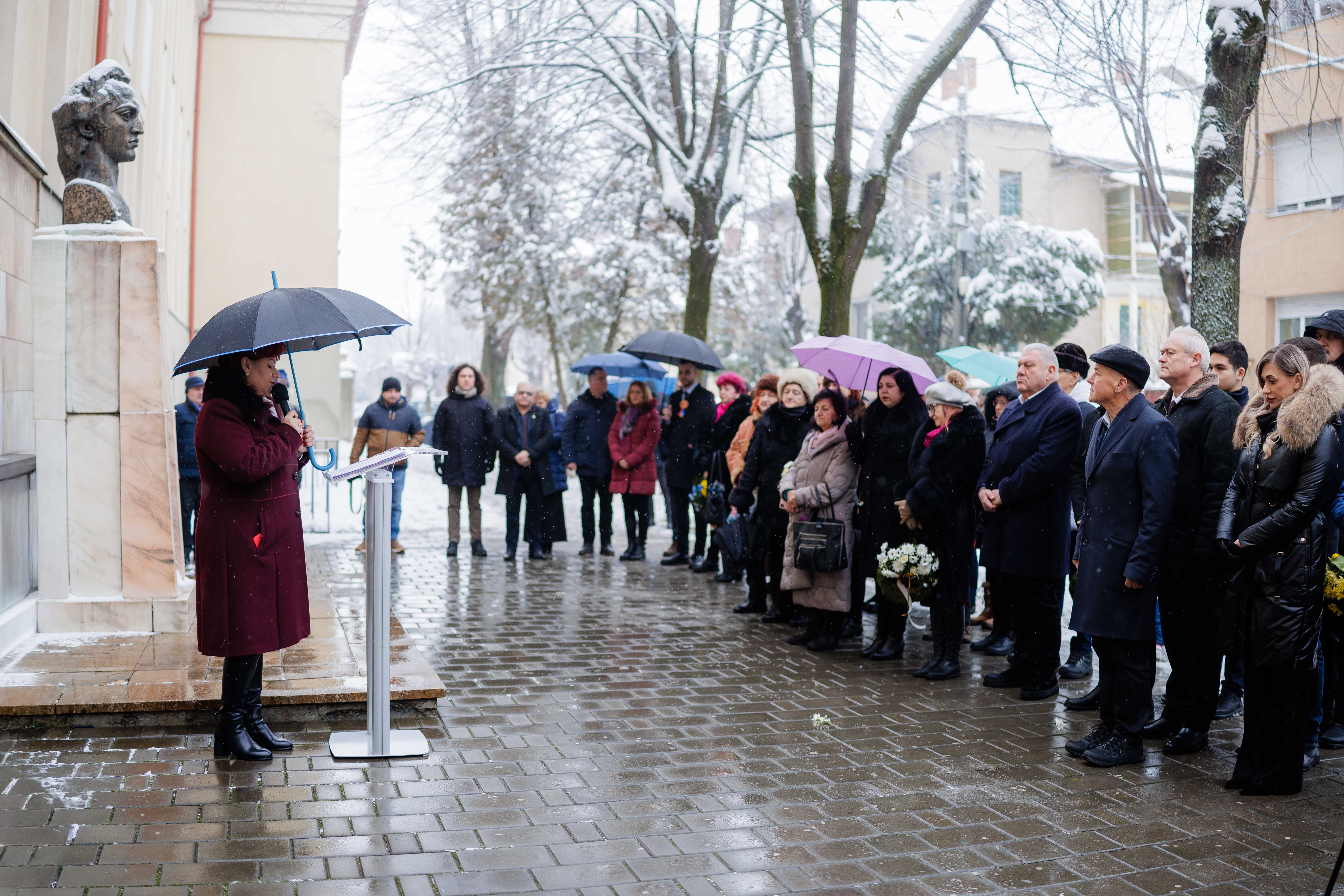 Astăzi, conducerea Primăriei Municipiului Satu Mare a participat la manifestările dedicate împlinirii a 176 de ani de la nașterea poetului național Mihai Eminescu, depunând jerbe la bustul Luceafărului poeziei românești din fața Colegiului Național ,,Mihai Eminescu’’ și la Monumentul Limbii Române.