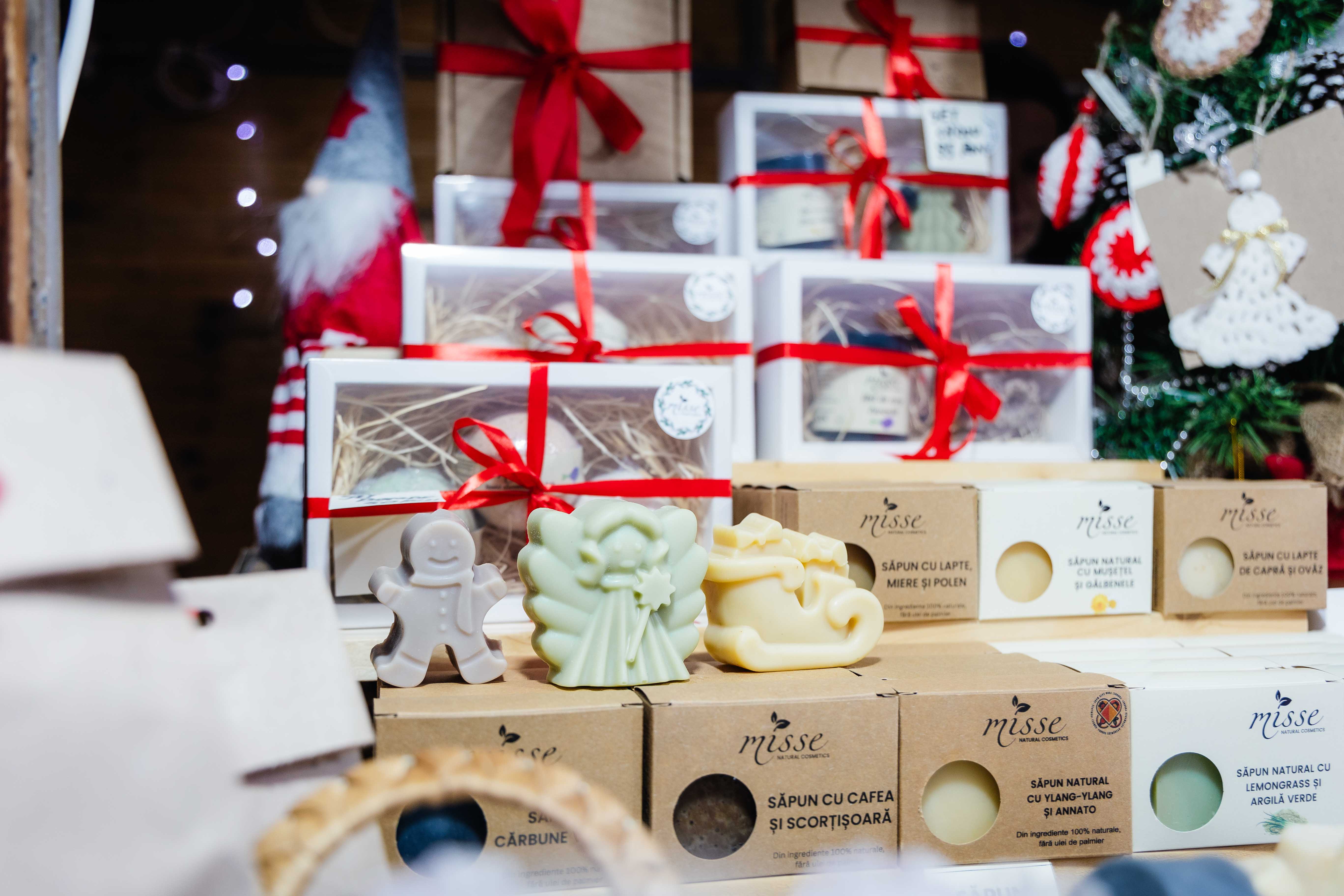 Căsuțele celor 30 de meșteșugari și producători, cu o varietate de creații autentice, decorațiuni, suveniruri, vor fi o excelentă sursă de inspirație în alegerea darurilor de Crăciun.