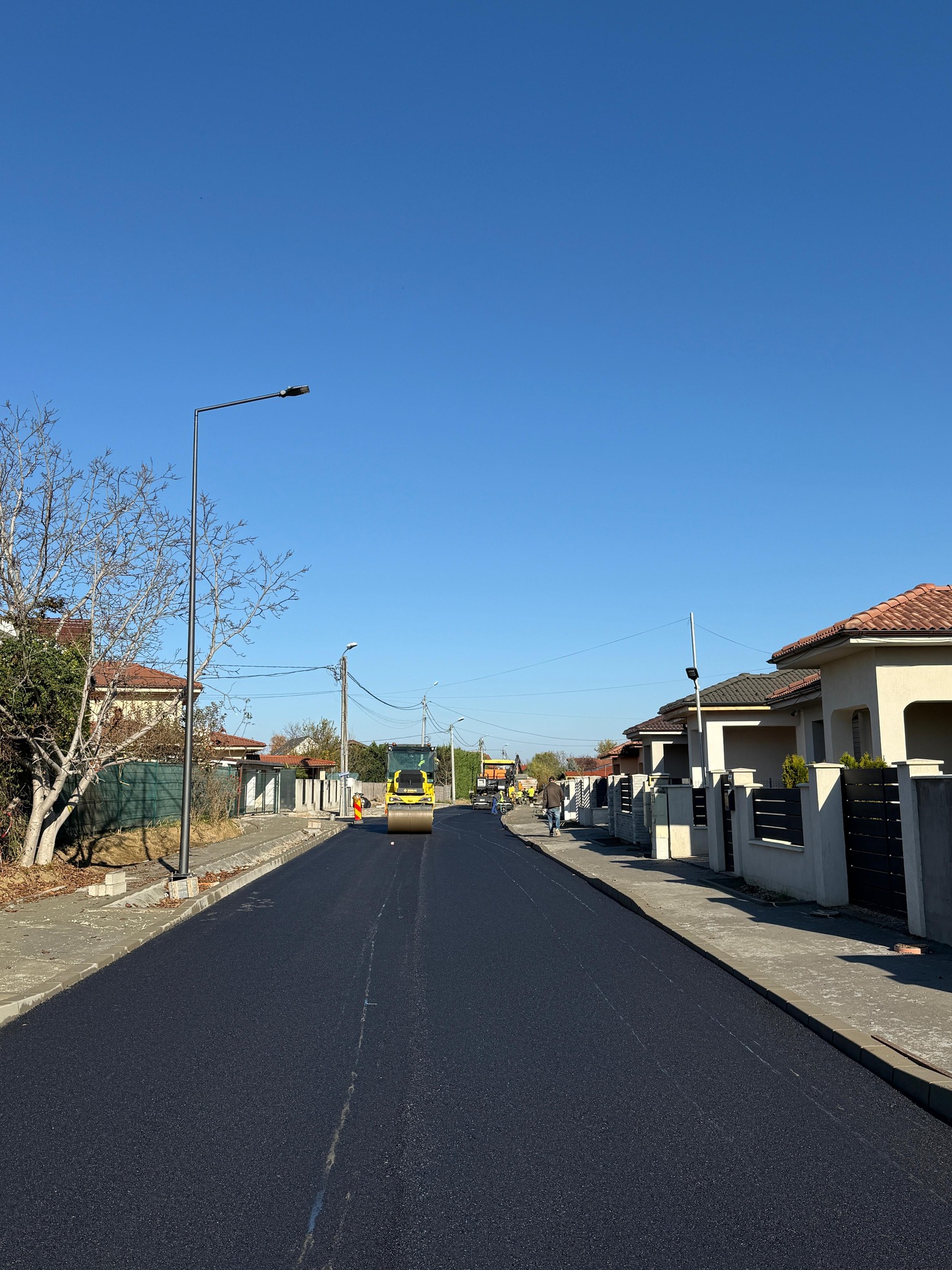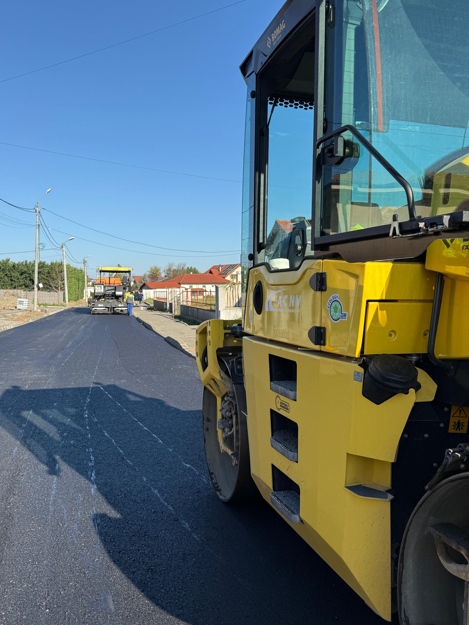 Az első aszfaltréteget önti a kivitelező a Gyulafehérvár (Alba Iulia) utcában