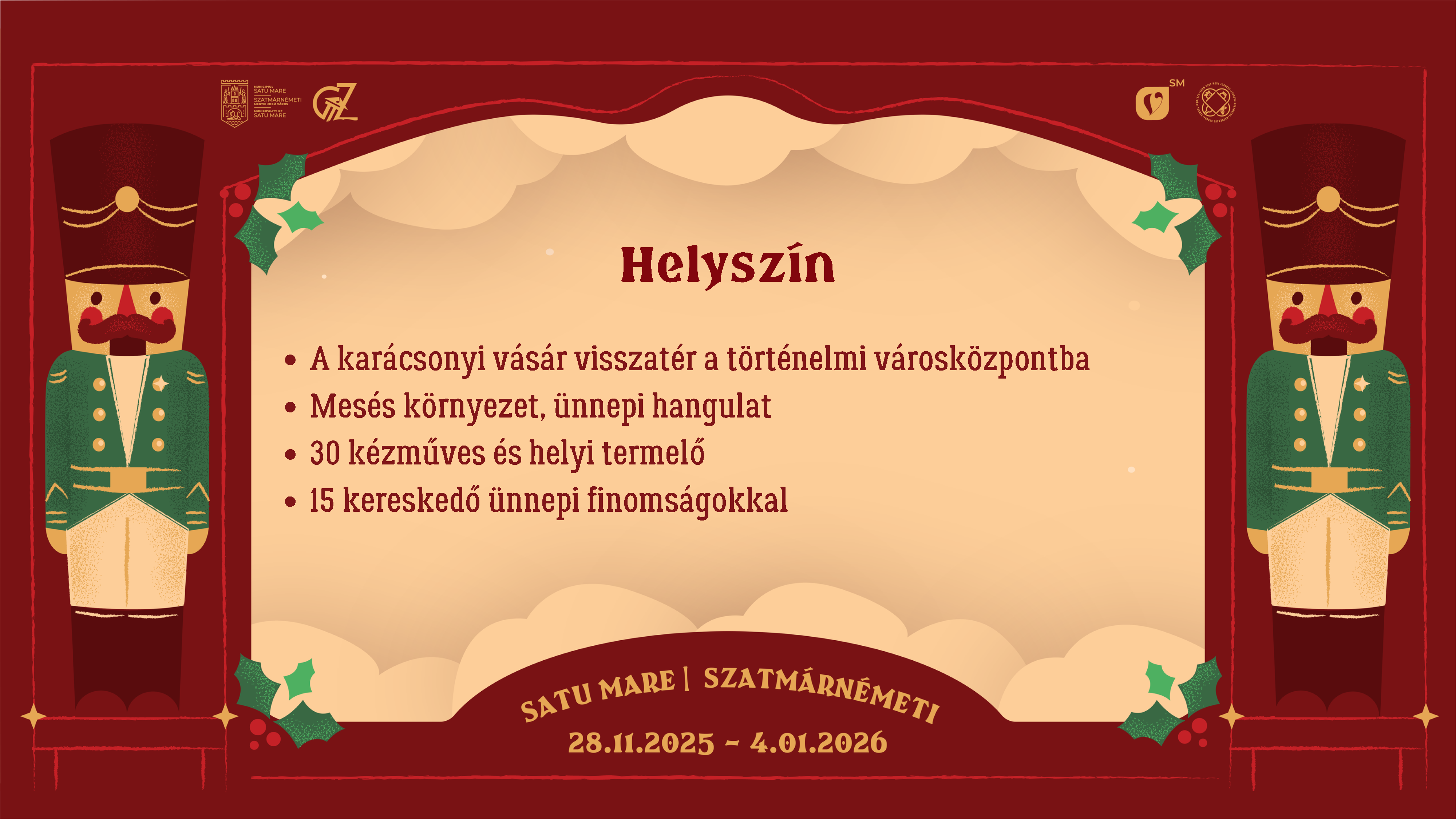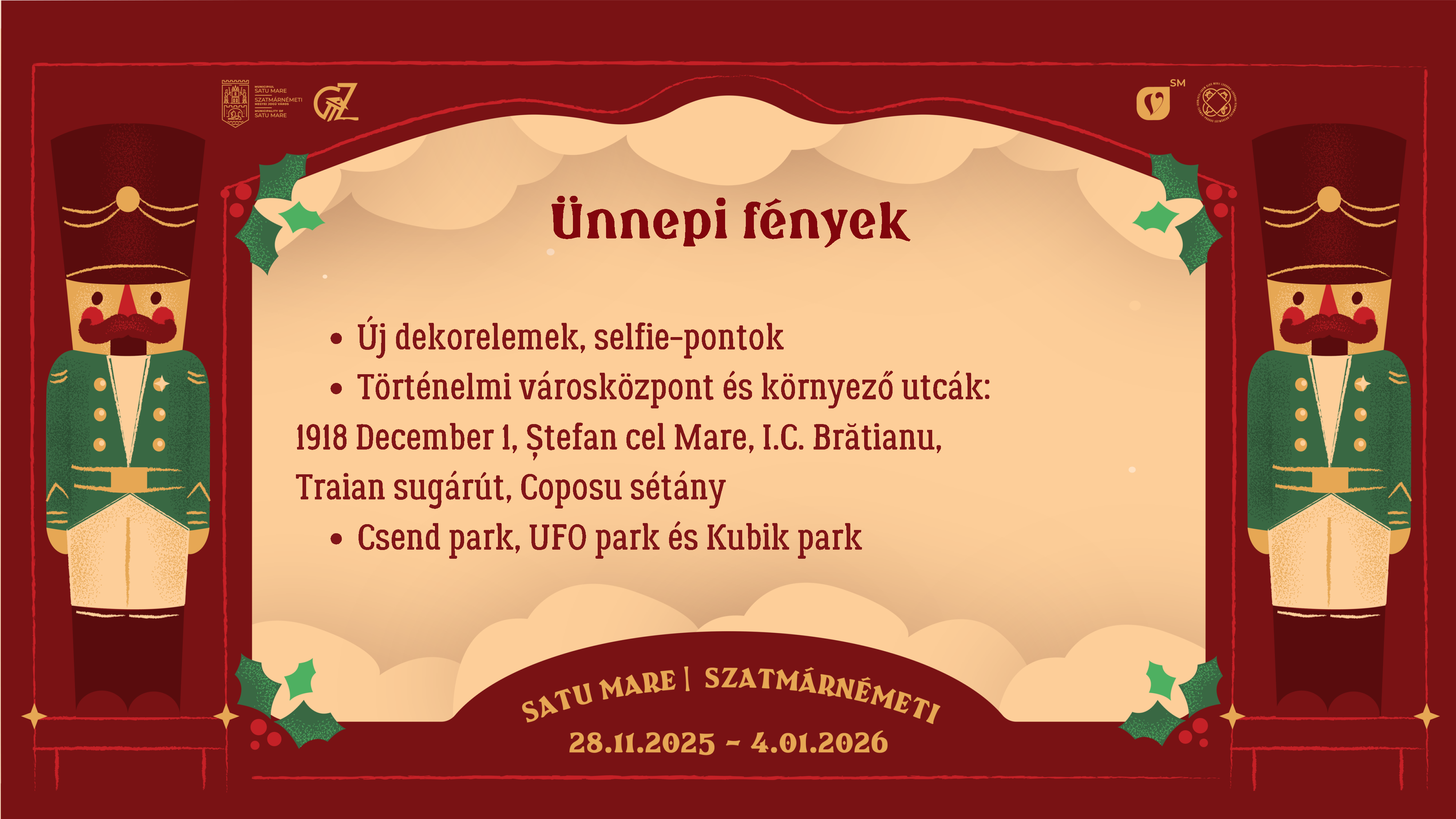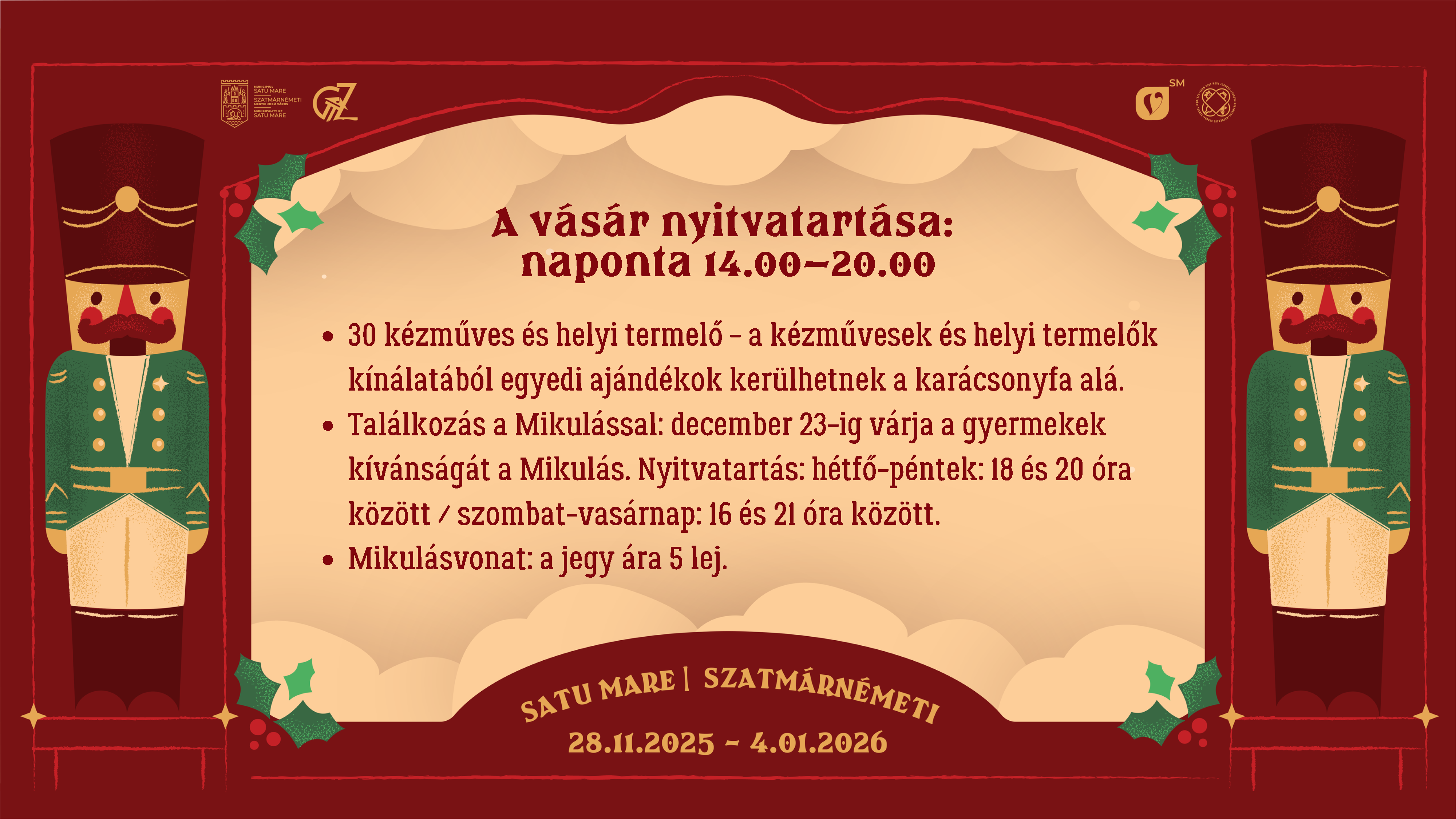Várjuk Önöket a Szatmárnémeti Karácsonyi Vásáron, a régi főtér fénykupolája alatt 2025. november 28. és 2026. január 4. között, éljük át együtt karácsony örömét!