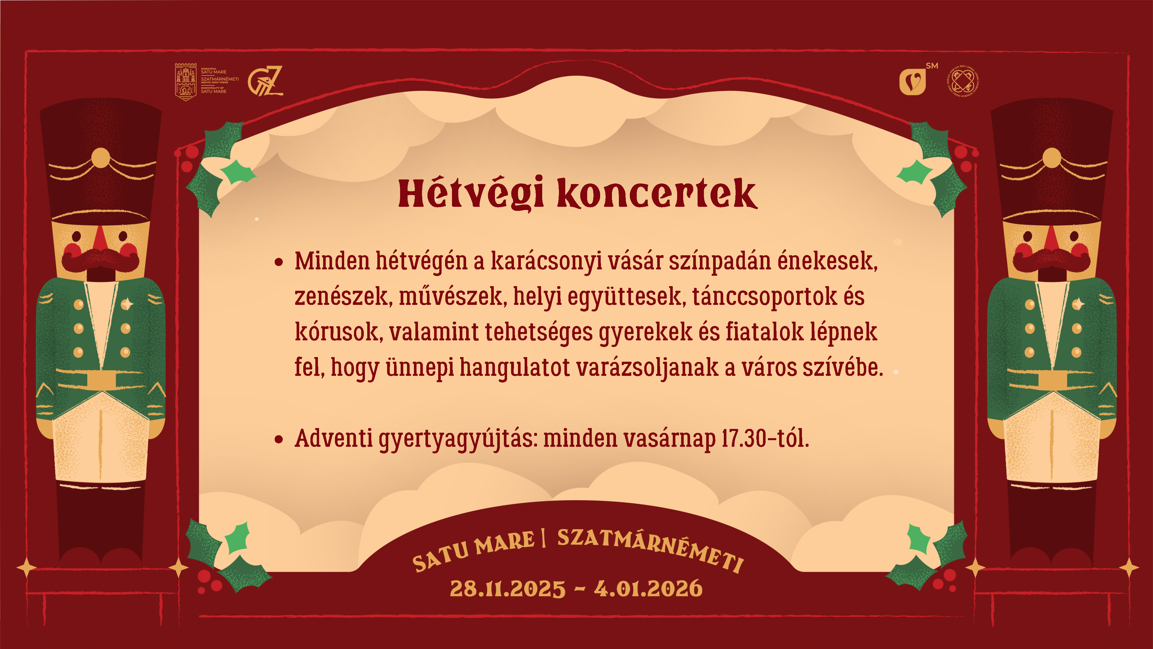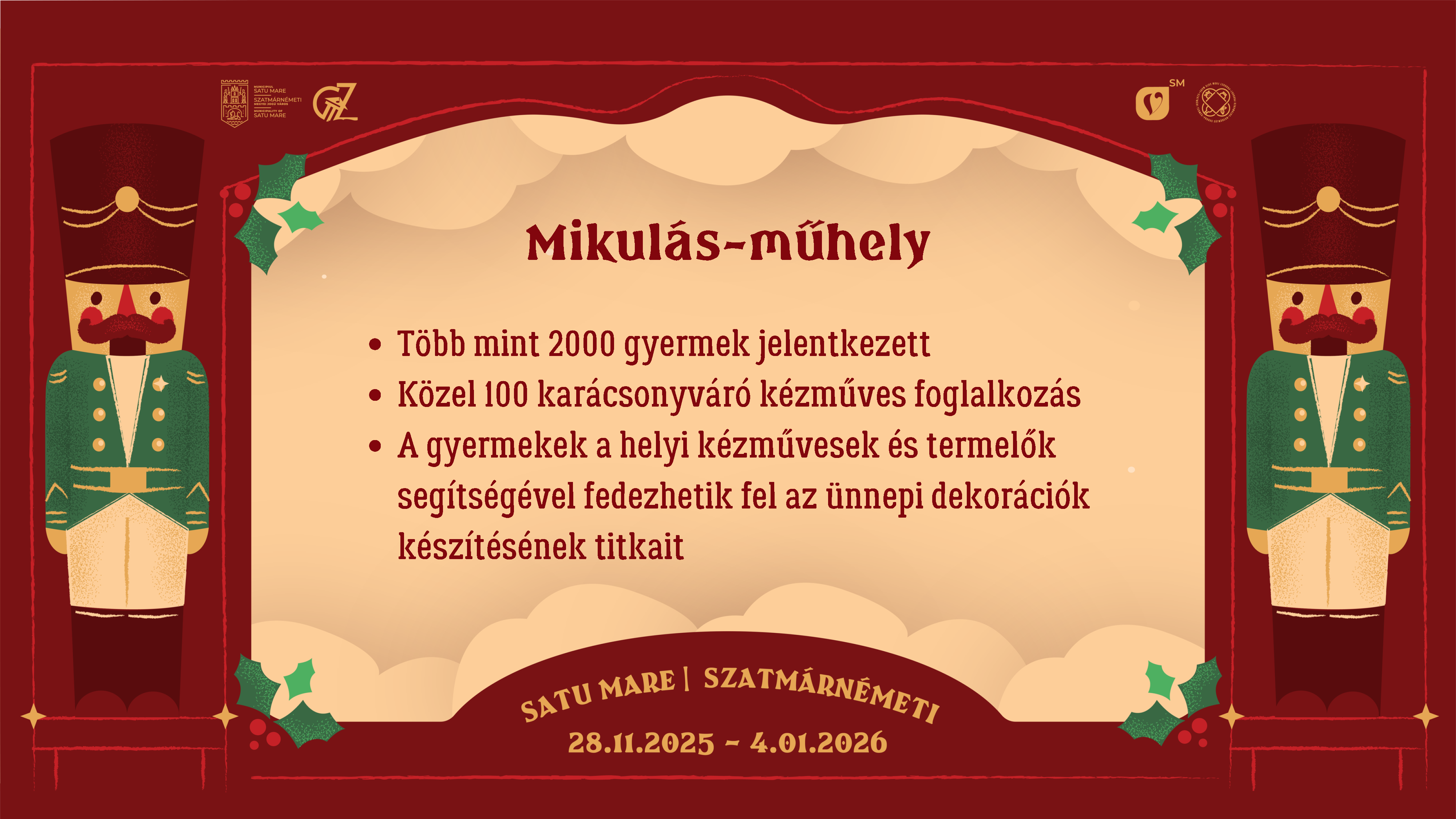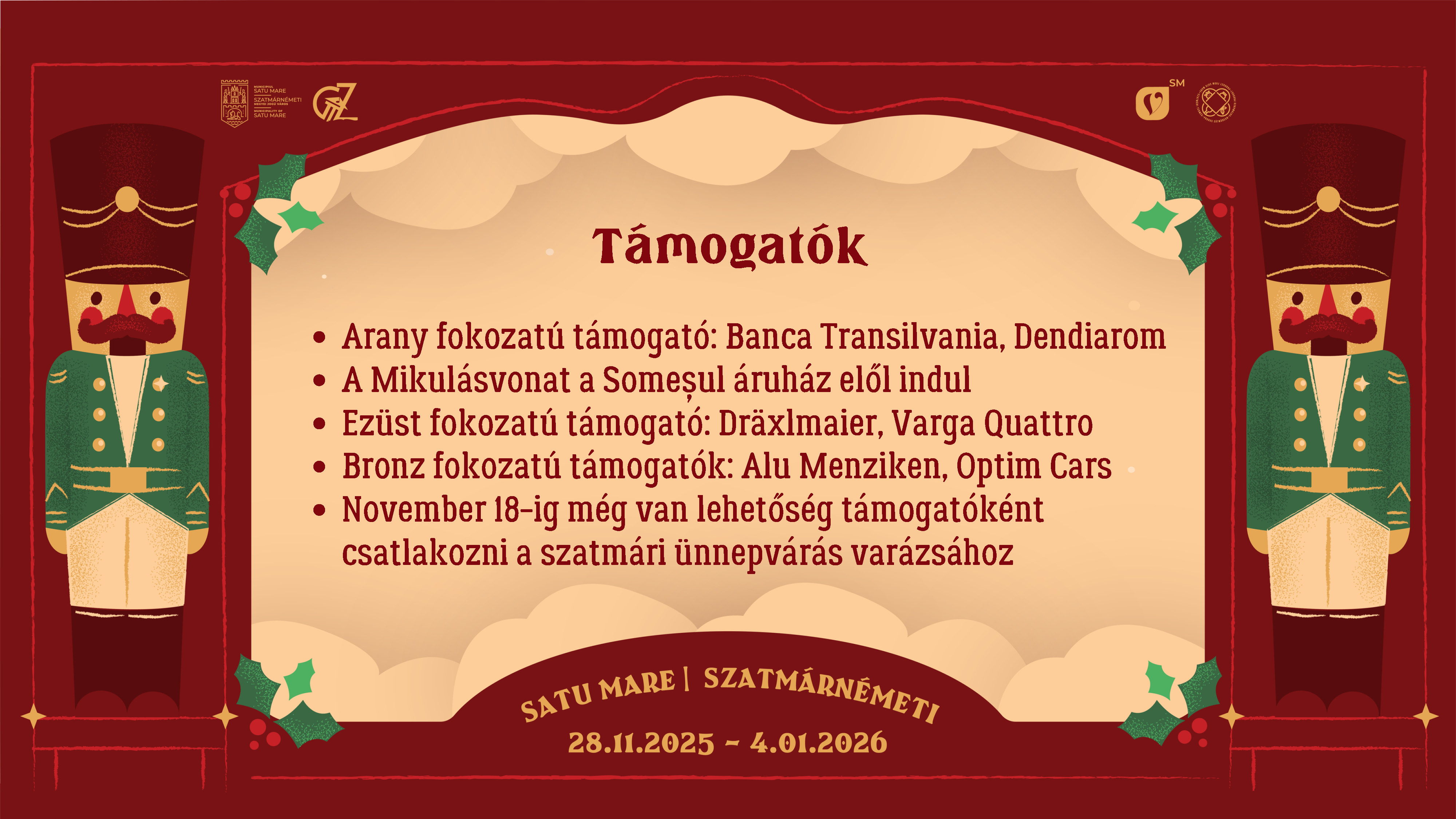 Várjuk Önöket a Szatmárnémeti Karácsonyi Vásáron, a régi főtér fénykupolája alatt 2025. november 28. és 2026. január 4. között, éljük át együtt karácsony örömét!