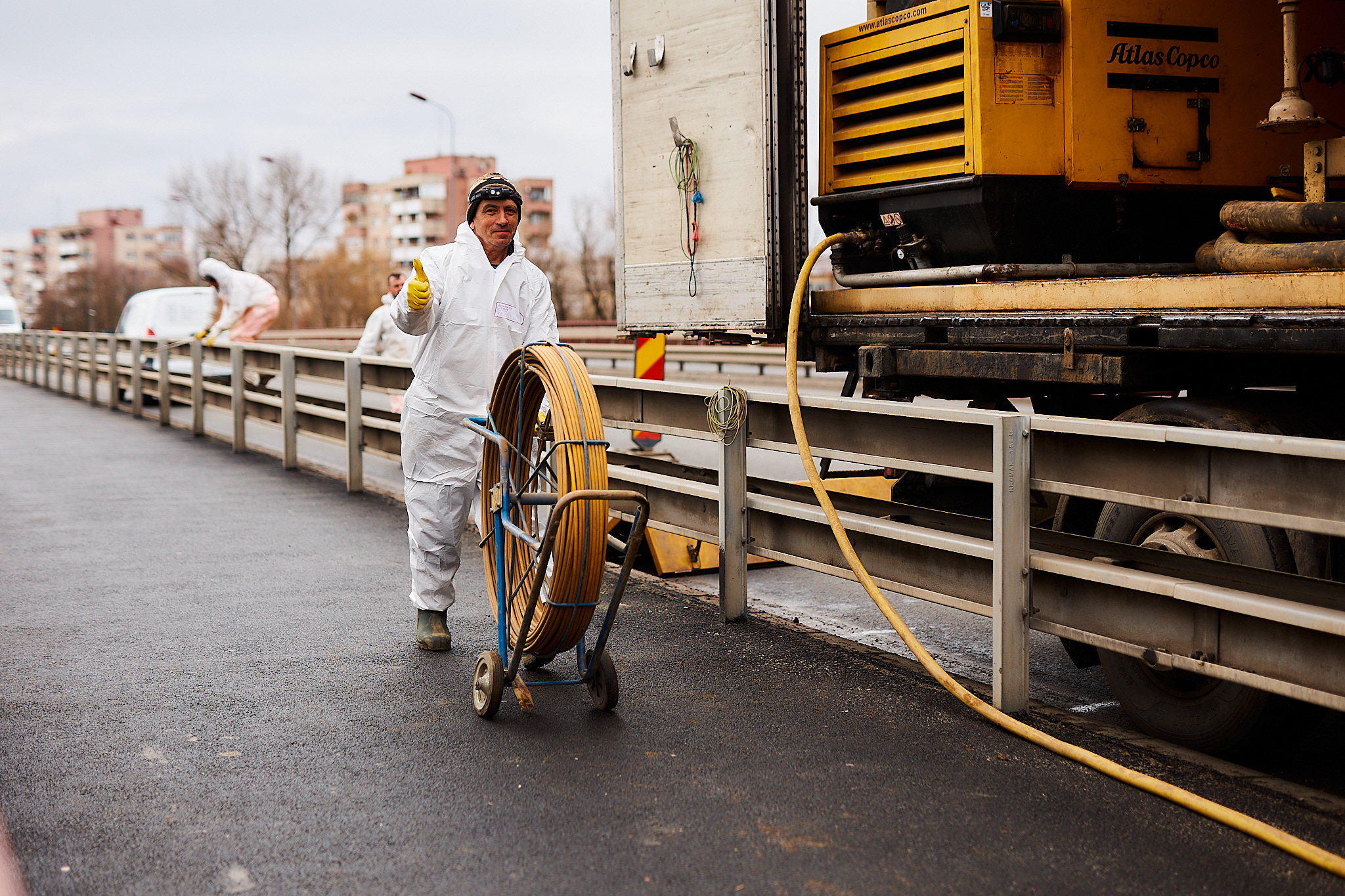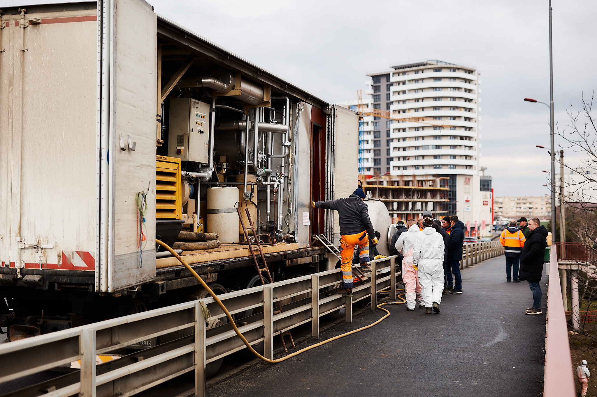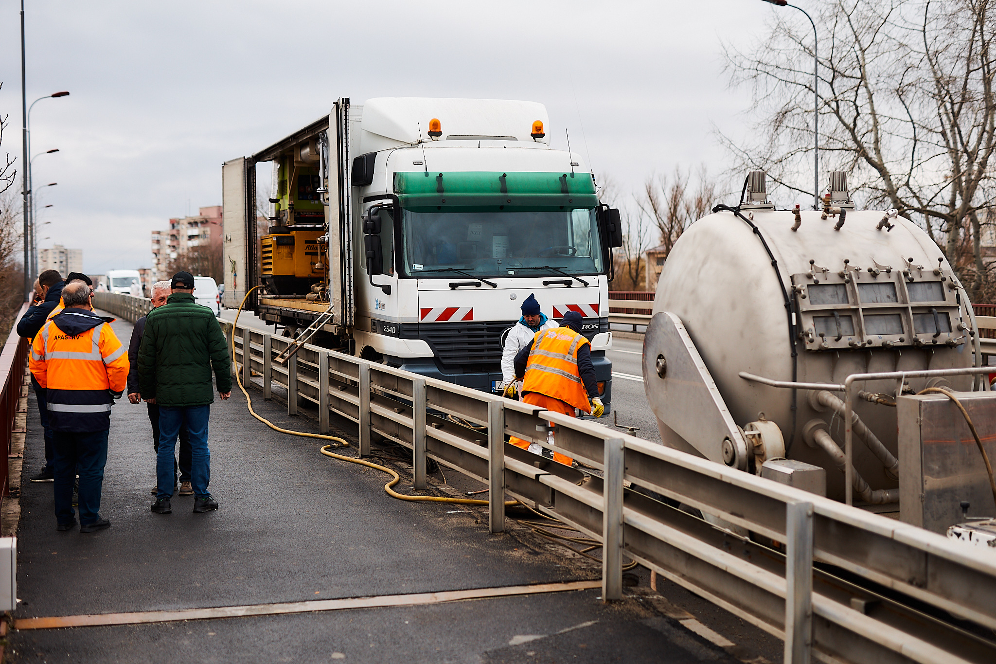 Reabilităm conducta de apă care traversează Podul Golescu folosind metoda inovatoare a cămășuirii (țeavă în țeavă). Aceasta înseamnă că introducem o conductă nouă, durabilă, în cea veche, fără săpături ample și cu impact minim asupra traficului.