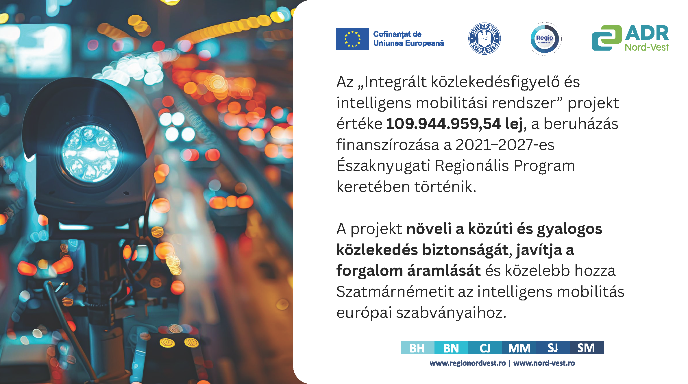 Joi, 13 noiembrie 2025, în cadrul unei conferințe de presă, primarul municipiului Satu Mare, Kereskényi Gábor, a prezentat detalii referitoare la un nou proiect al cărui contract de finanțare a fost recent semnat - ,,Sistem integrat de monitorizare a traficului și mobilitate inteligentă în Municipiul Satu Mare’’. Valoarea totală a proiectului este de 109.944.959,54 lei, proiectul fiind finanțat în cadrul Programului Regional Nord-Vest 2021-2027.