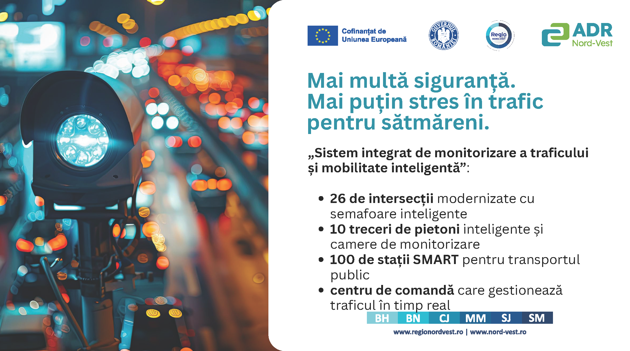 Informații suplimentare referitoare la proiect: https://infosm.ro/i/ProiectSistemIntegratTraficMobilitate; https://regionordvest.ro/