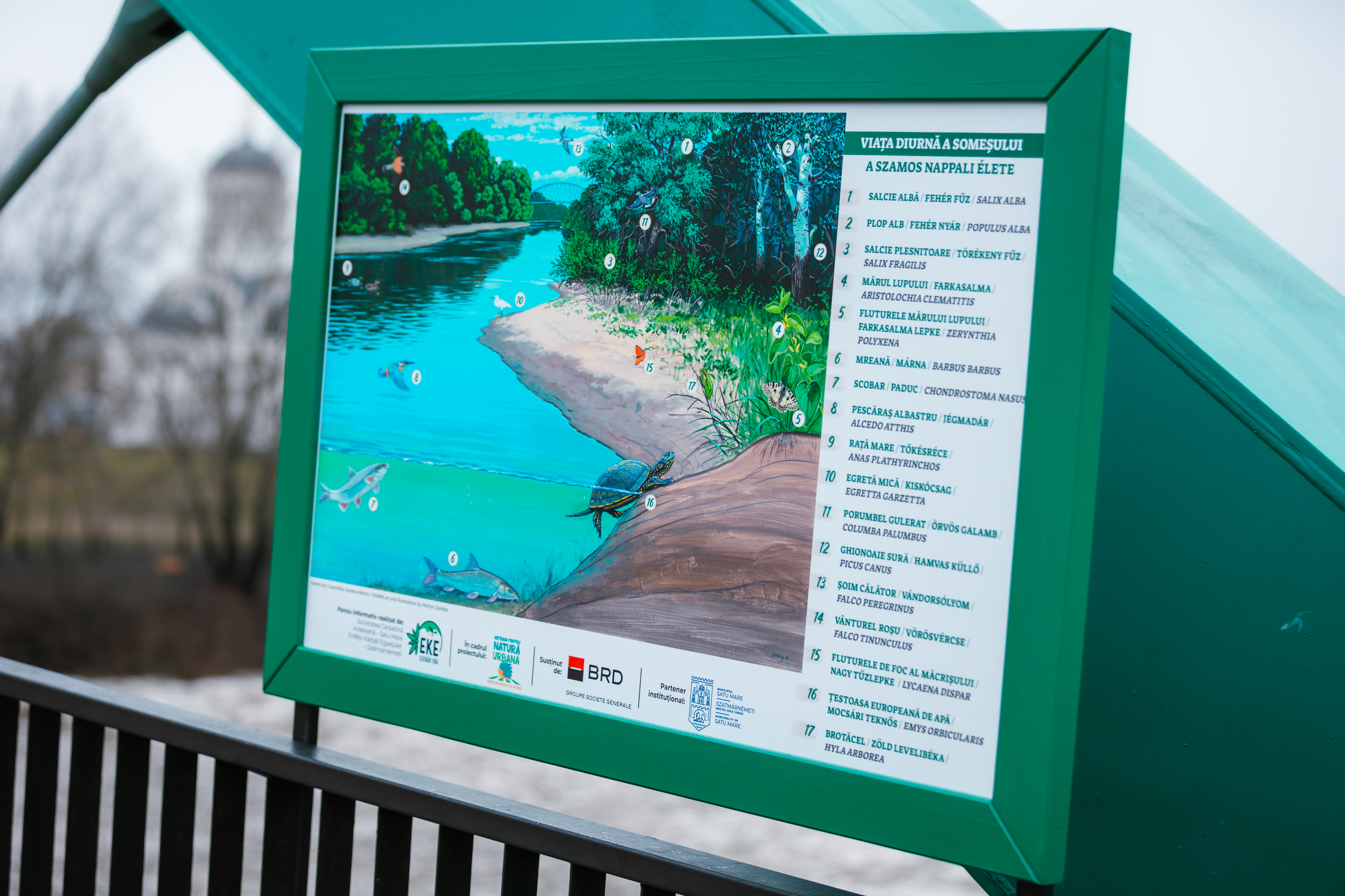 Sătmărenii care traversează Podul Prieteniei pot descoperi informații interesante despre peștii Someșului, viața diurnă și nocturnă a râului.