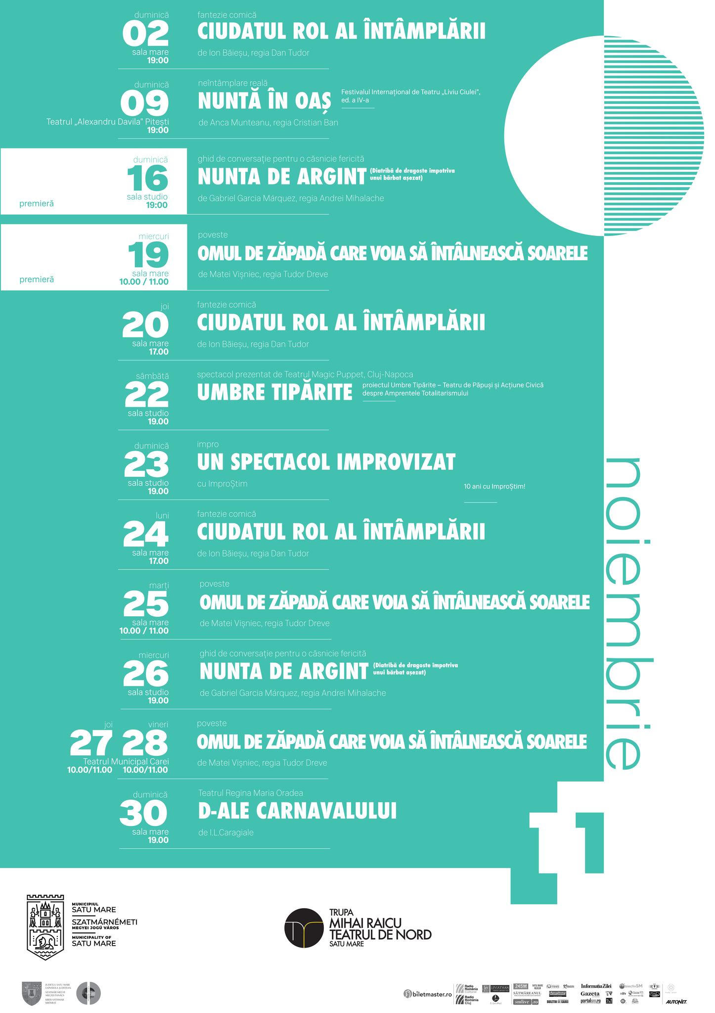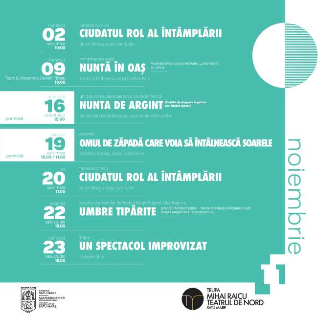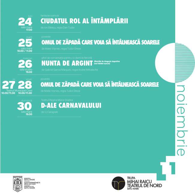Vineri 28 noiembrie 2025, orele 10.00/11.00 – Teatrul Municipal Carei